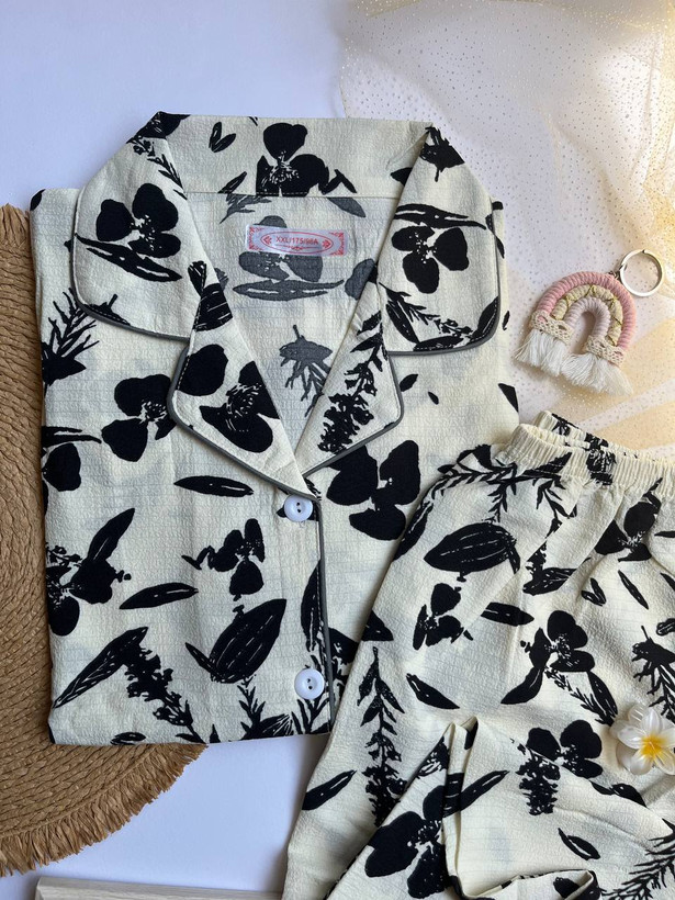 🦋بلوز آستین نیمه جلو دکمه دار با نوار قیطون دوزی